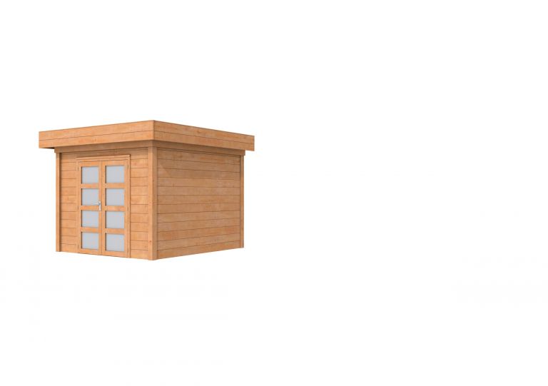 Wordt geleverd met dubbele glasdeur. Funderingsmaat (bxd) 303x303 cm. Buitenmaat (bxd) 353x333 cm. Hoogte 260 cm.