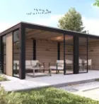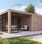 Wordt geleverd met dubbele glasdeur. Funderingsmaat (bxd) 593x303 cm. Buitenmaat (bxd) 643x333 cm. Hoogte 260 cm.