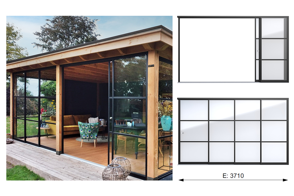 Gemaakt van zwart gecoat aluminium. Incl. horizontale en verticale roedes. 10mm dik glas, met meenemers (links en rechts).
